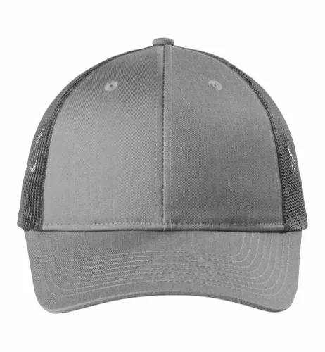 Fabric: 100% cotton twill front panels and bill (Solids) 65/35 polyester/cotton twill front panels and bill (Heathers) 100% polyester mesh mid and back panels Structure: Structured Profile: Low Closure: 7-position adjustable snapback