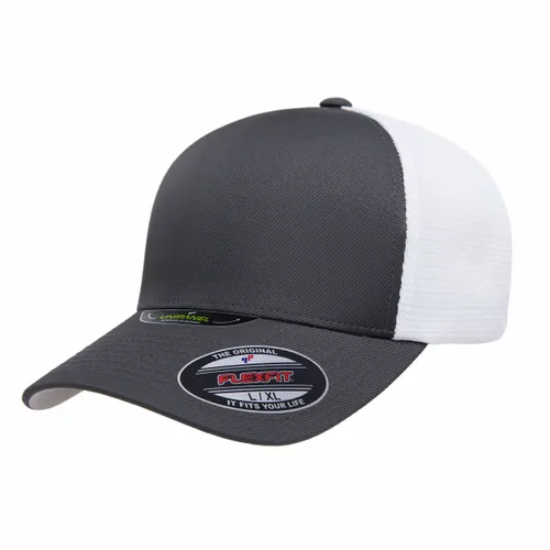 98% Cotton Twill/2% PU Spandex Structured, Six-panel, Mid-profile, 3 1/2″ Crown Permacurv® Visor, Silver Undervisor Small/Medium: 6 3/4 – 7 1/4 Large/Xlarge: 7 1/8 – 7 5/8