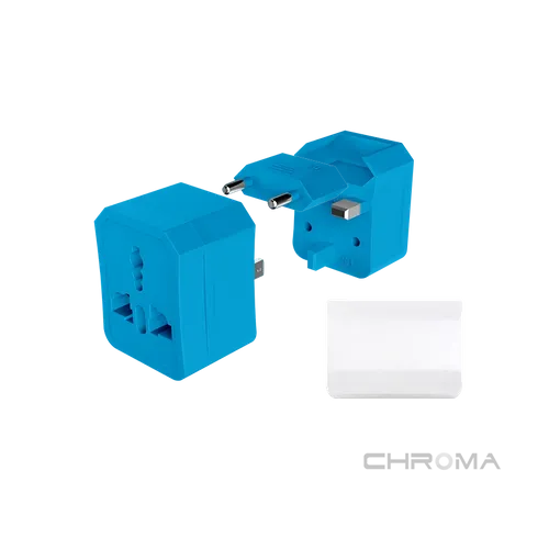 This colorful universal travel adapter covers more then 150 country's wall adapters. Includes a built in fuse protection. Perfect for everyone on the go. All stored in a nice clear case!