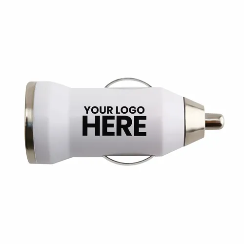 Mini USB car charger with 1000mAh will power up your iPhone and, although slowly, even your iPad! Features built in fuse for added safety. Blister packaging included. Full color two-sided business card available or drop in your own business card for a great leave-behind gift.