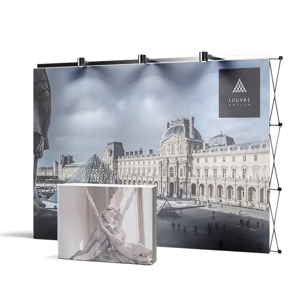 The graphic panel is printed directly onto a fabric material, and its hardware usually includes spring metal steel and pegs or an aluminum frame with wooden attachments, making the pop-up frames very easy to set up and transport.