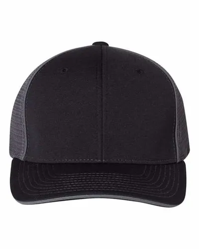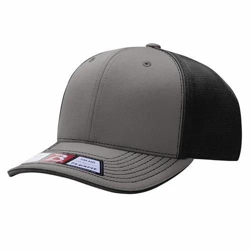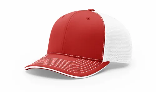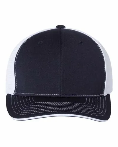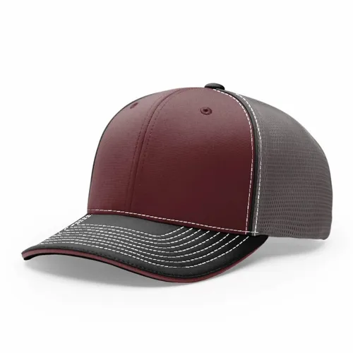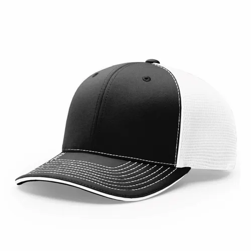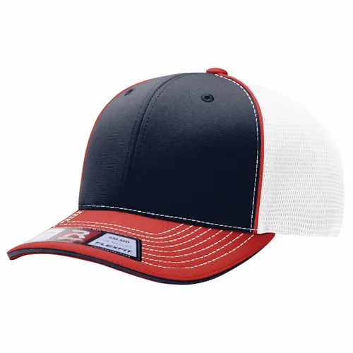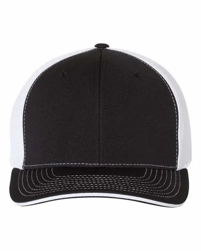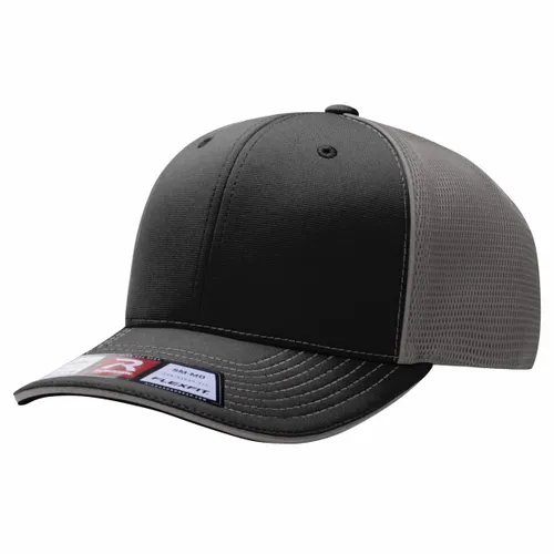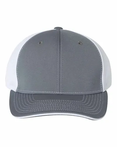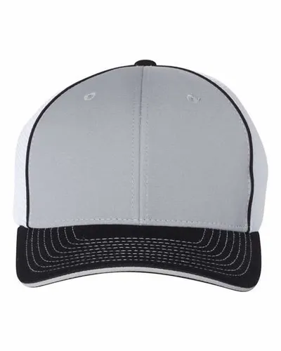 Front: 98% Polyester/2% Spandex  Back: 95% Polyester/5% Spandex Pulse Fabric, Sportmesh Structured, Six-panel, Mid Pro Profile Pre-curved Contrast Stitch Sandwich Bill Comfort Stretch Sweatband Small/Medium: 7 – 7 1/4″ Large/XLarge: 7 3/8″ – 7 5/8″