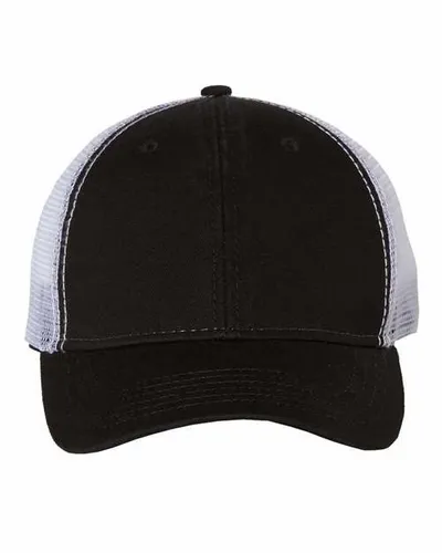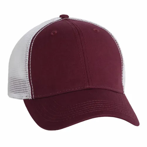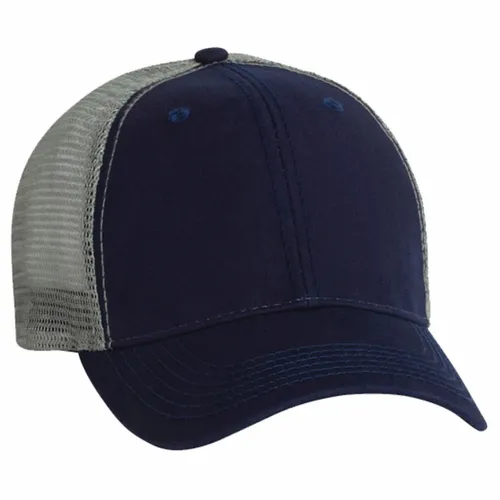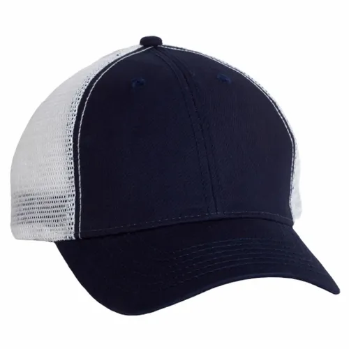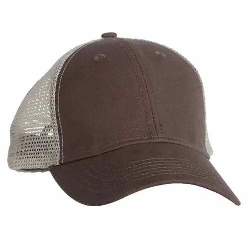 Chino Twill Front Panels, Mesh Sides and Back, Bio-washed Structured, Mid-profile, Six Panel, Contrast Taping, Pre-curved Visor, Sewn Eyelets, Velcro Closure, One Size