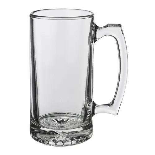 25 oz. Libbey Glass Beer Mugs. Highest Standard Glass Material. Tall, Star-bottom Sports Beer Mug with Thumb Grip Handle. Recommended Hand Wash Only