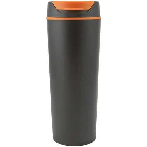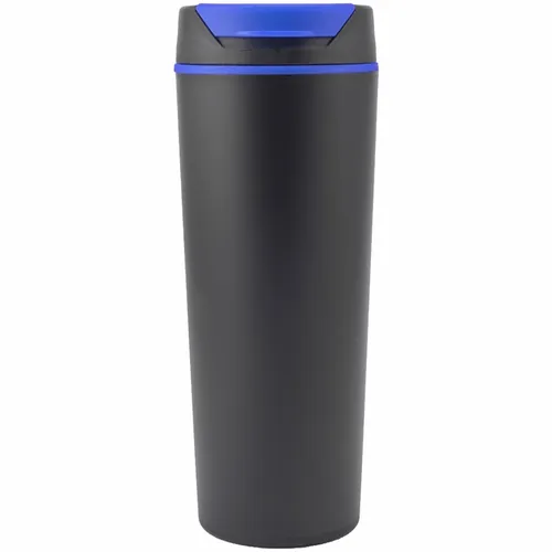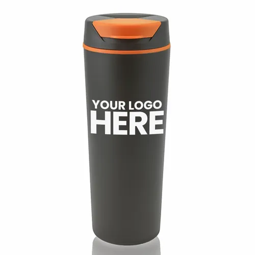 18 oz. / 500 ml Plastic Travel Mug. Double Wall Construction. Color Accent Flip Top. Polypropylene Material