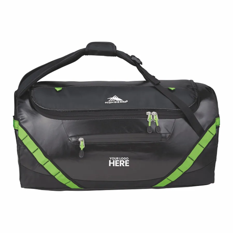 The High Sierra Kennesaw 24” Outdoor Duffel can be carried as a duffel or a backpack. This versatile duffel is made from durable and lightweight coated water resistant fabric. Organize your belongings easily in the large main compartment, interior zippered mesh pocket and front zippered accessory pocket. This duffel also features a front panel daisy chain for attaching gear and convenient grab handles on top and side.