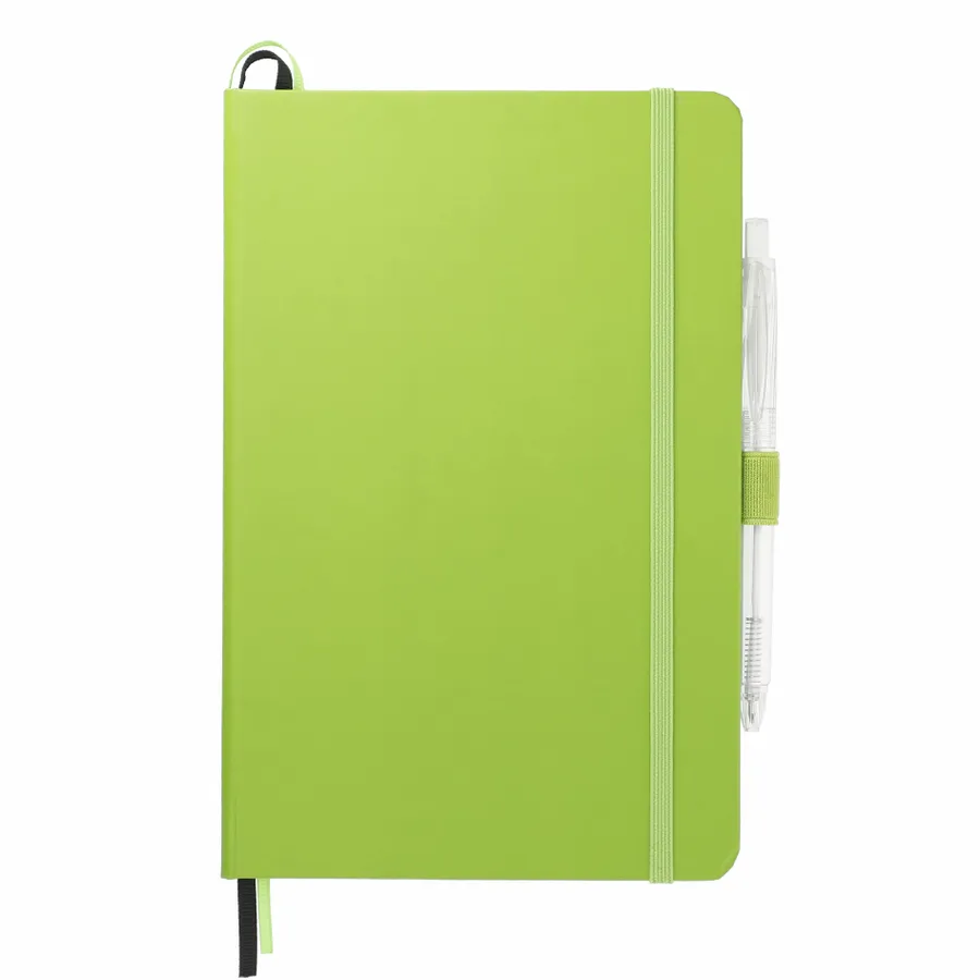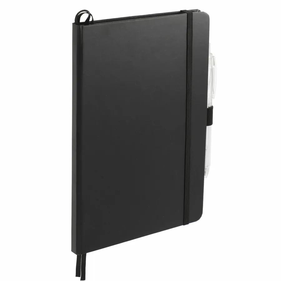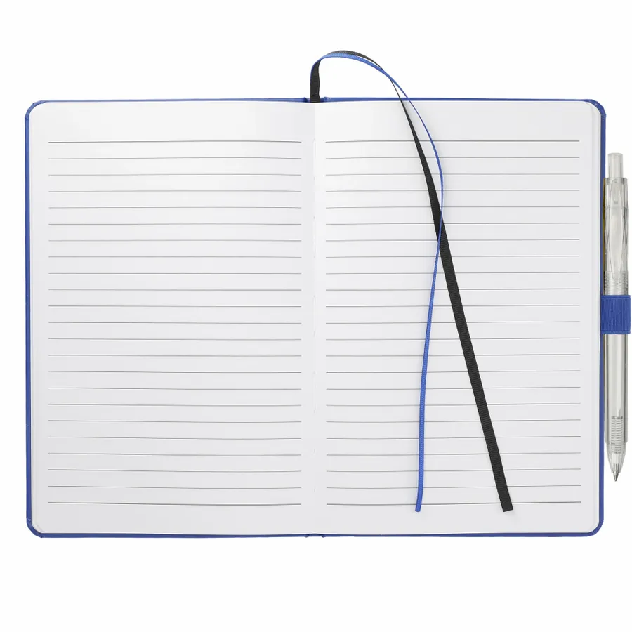 The 5.5 x 8.5 FSC Mix Bound Journal Set includes the 5.5 x 8.5 FSC Mix Bound Journal (2800-82) and FUNCTION RPET Quick-Dry Gel Pen (6003-29). The set features a FSC-certified paper cover with 80 sheets of white FSC-certified soy based ink lined paper. Includes color-matching elastic closure, pen loop and ribbon page marker. Through a partnership with 1% For The Planet, one percent of sales of all EcoSmart products are donated to environmental nonprofits.