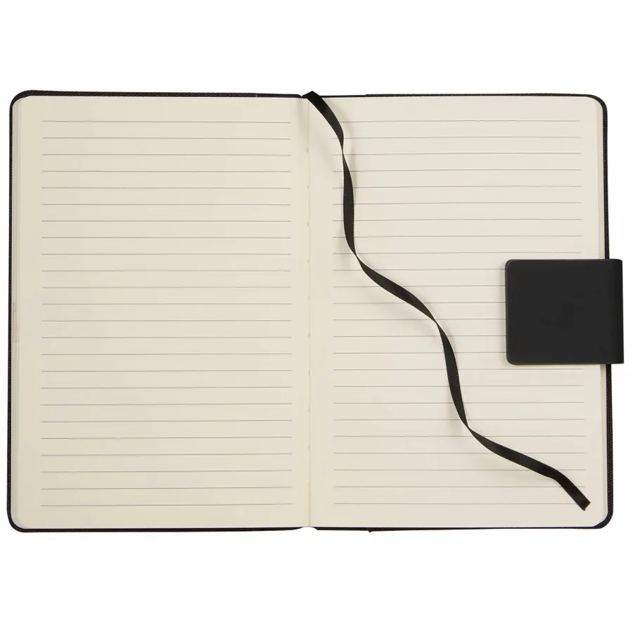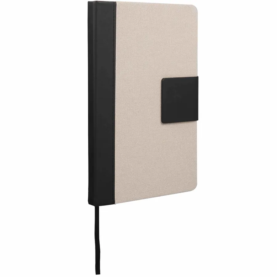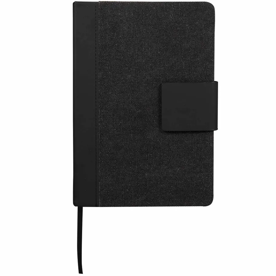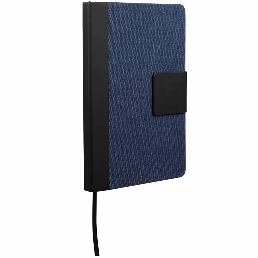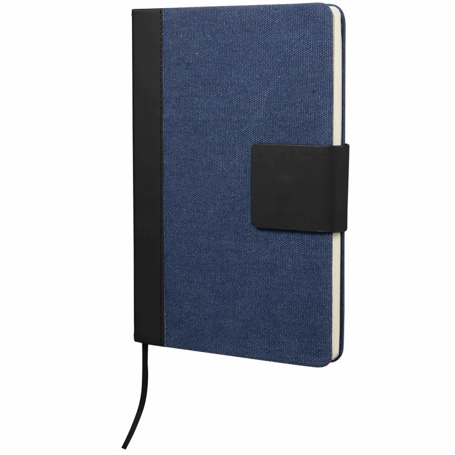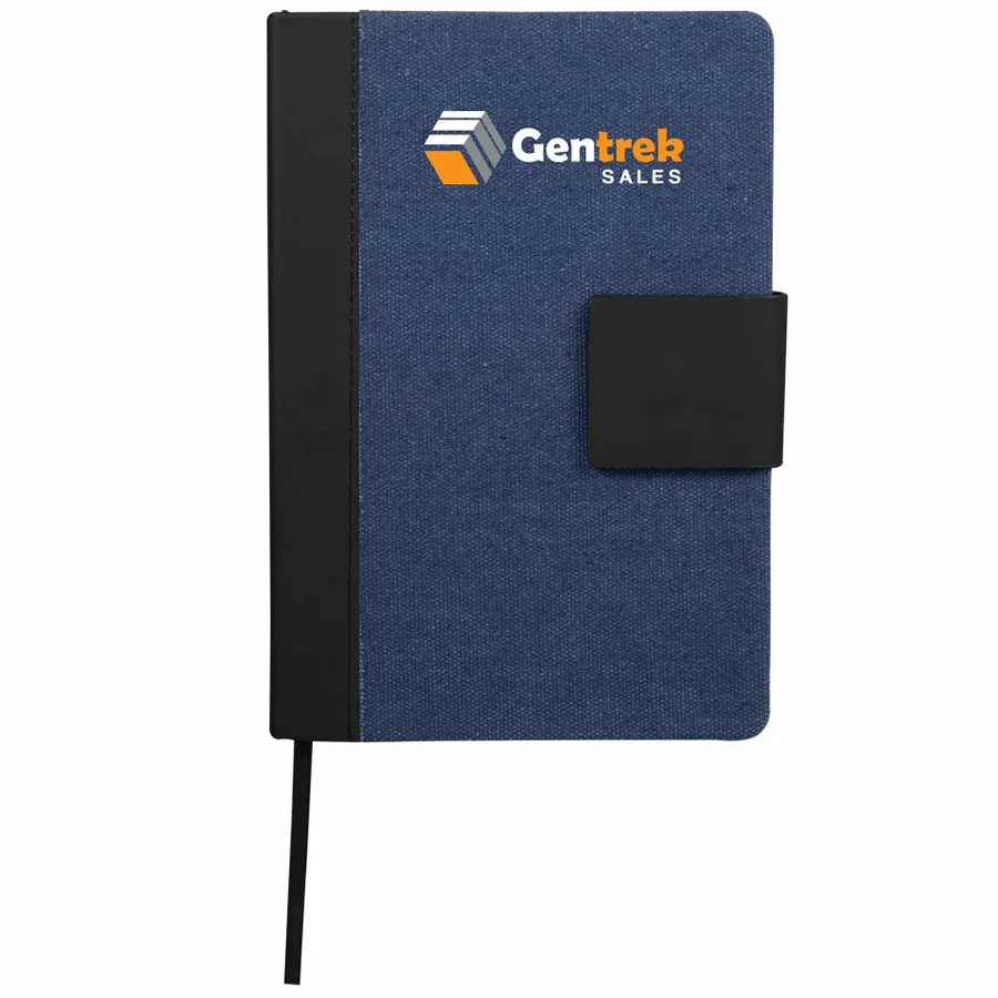 The 5.5 x 8.5 FSC Recycled Canvas Bound Notebook is a stylish choice for daily notes and ideas. Featuring a 100% recycled cotton canvas cover with a recycled PU spine and magnetized closure, this notebook offers both durability and eco-conscious design. Inside, it includes 80 sheets of FSC recycled cream lined paper for a smooth writing experience, along with a black ribbon page marker to keep your place. By choosing this notebook, you’re making a positive impact on the environment through a partnership with 1% For The Planet, as a portion of each sale supports environmental nonprofits.