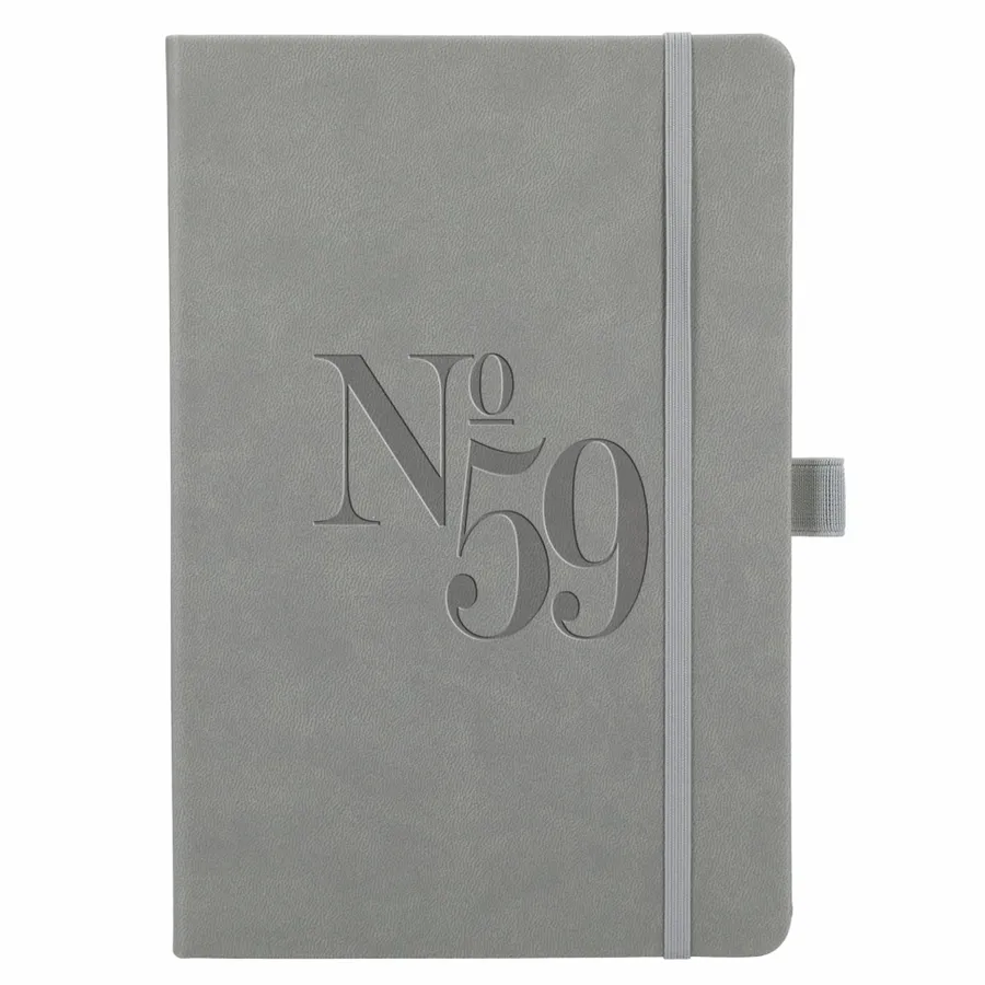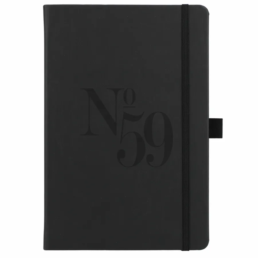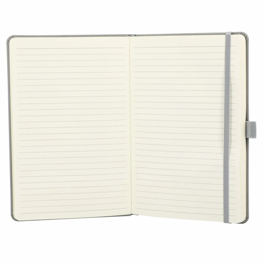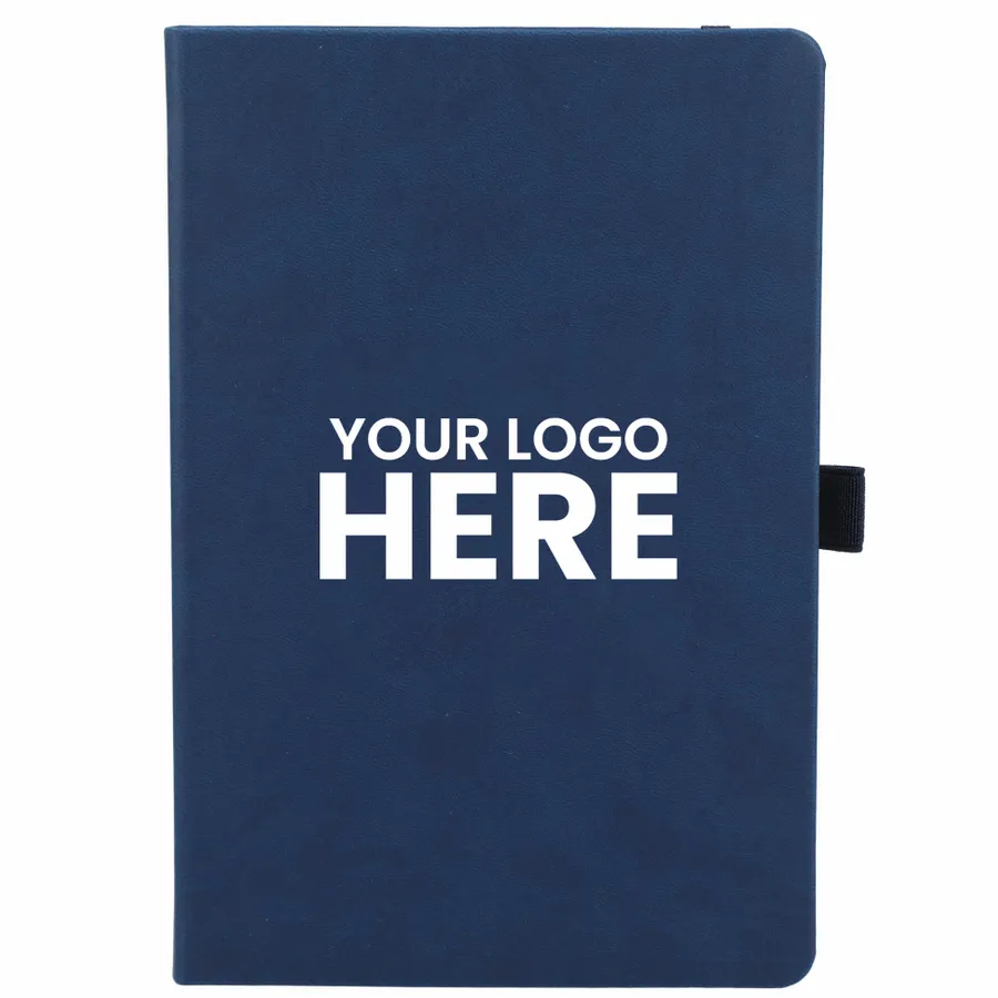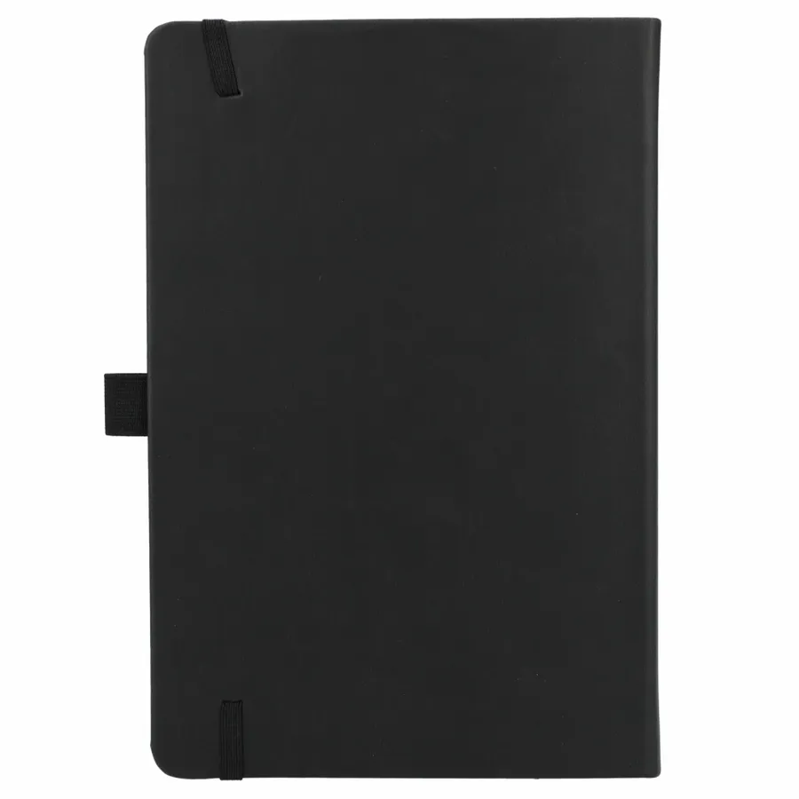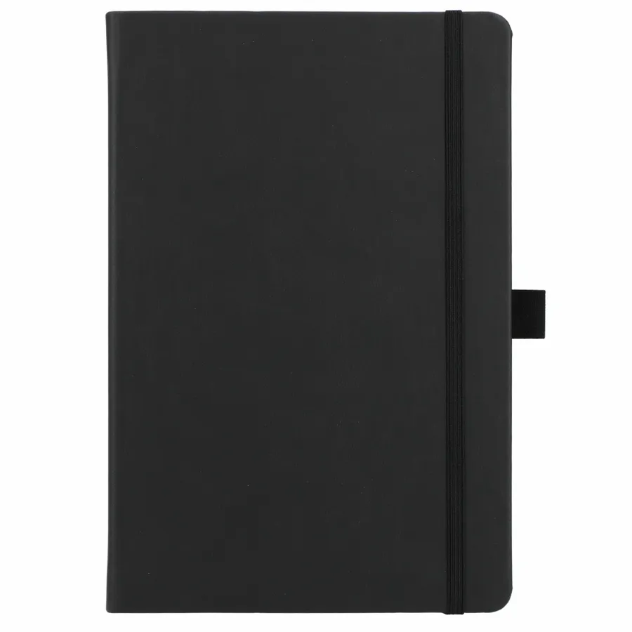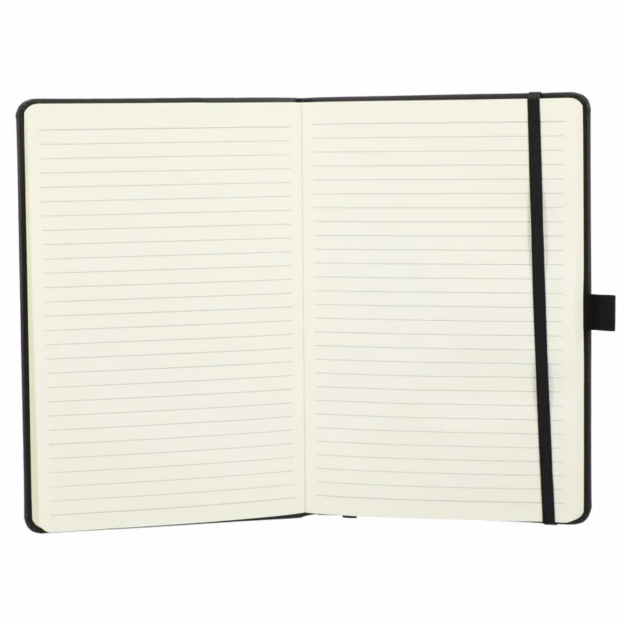 The 5.5 x 8.5” Mano Recycled Hard Bound Journal features a 30% recycled post-consumer polyester+ 70% polyurethane cover with 80 pages of recycled cream lined paper. Includes document pocket, color matching ribbon page marker, elastic band and pen loop.