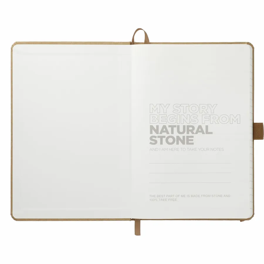 The Washable Kraft Stone Bound Journal features a durable, water resistant paper hard cover with 60 sheets of white lined stone paper. Stone paper is water resistant, tear proof and noticeably smooth for a superior writing experience. Also featuring an elastic closure, ribbon page marker and elastic pen loop. Through a partnership with 1% For The Planet, one percent of sales of all EcoSmart products are donated to environmental nonprofits. Due to the nature of the material, there may be color variances.