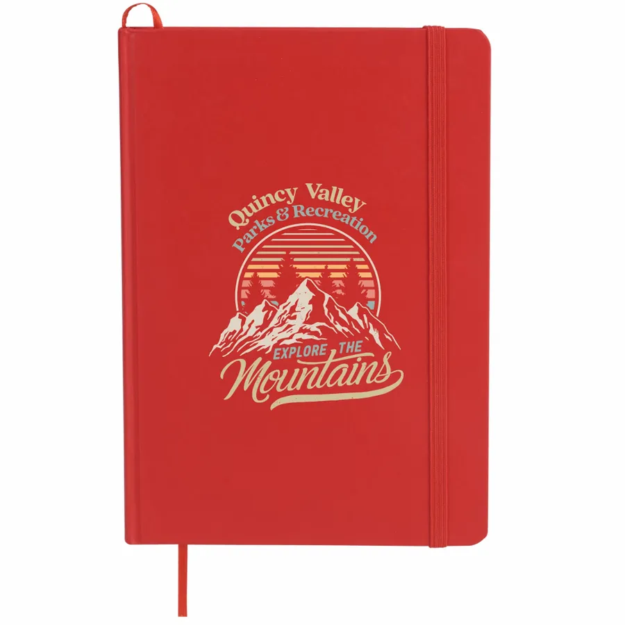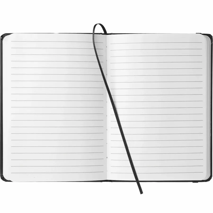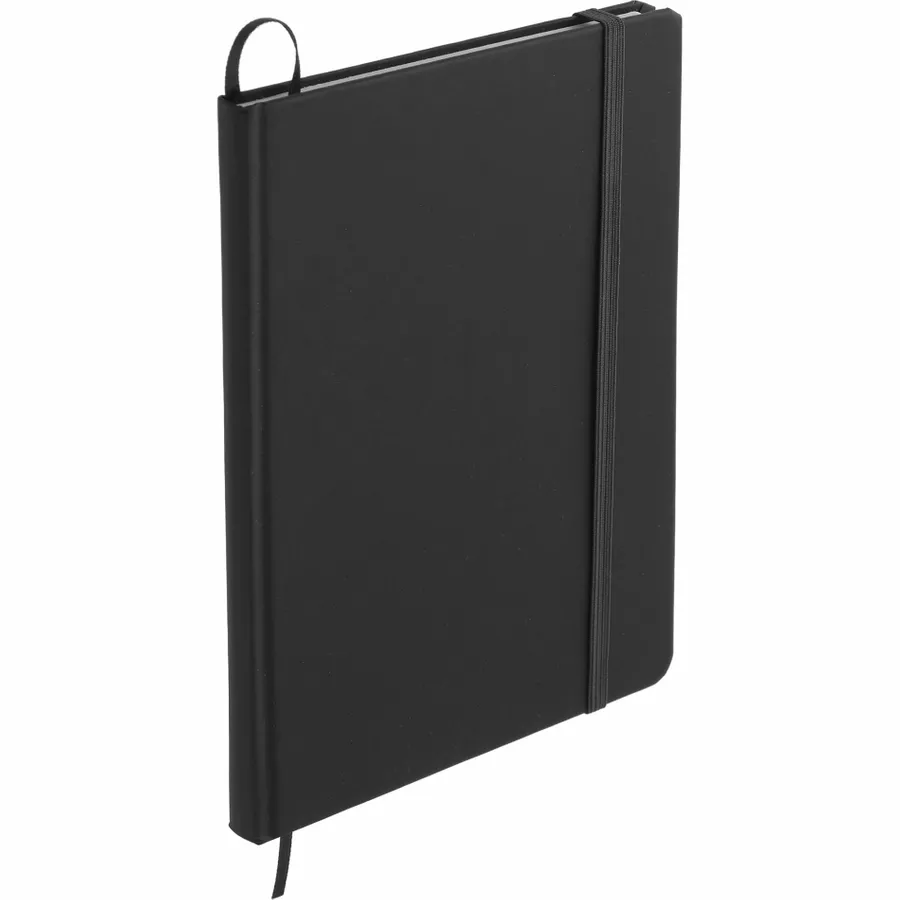 The Bullet 5 x 7 FSC Mix Snap Elastic Closure Notebook is an attractive, UltraHyde notebook that includes a matching color ribbon bookmark. It contains 80 ruled pages of FSC Mix paper.
