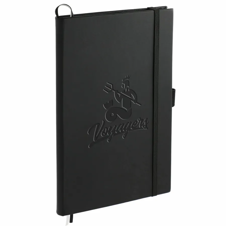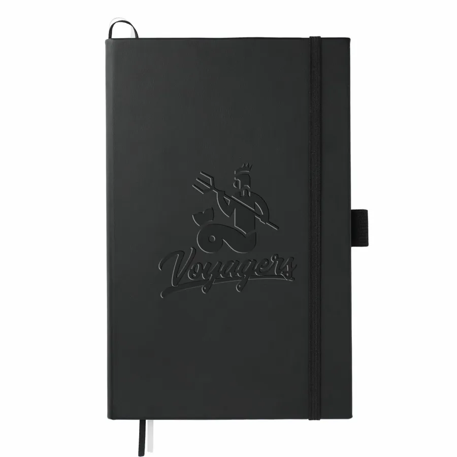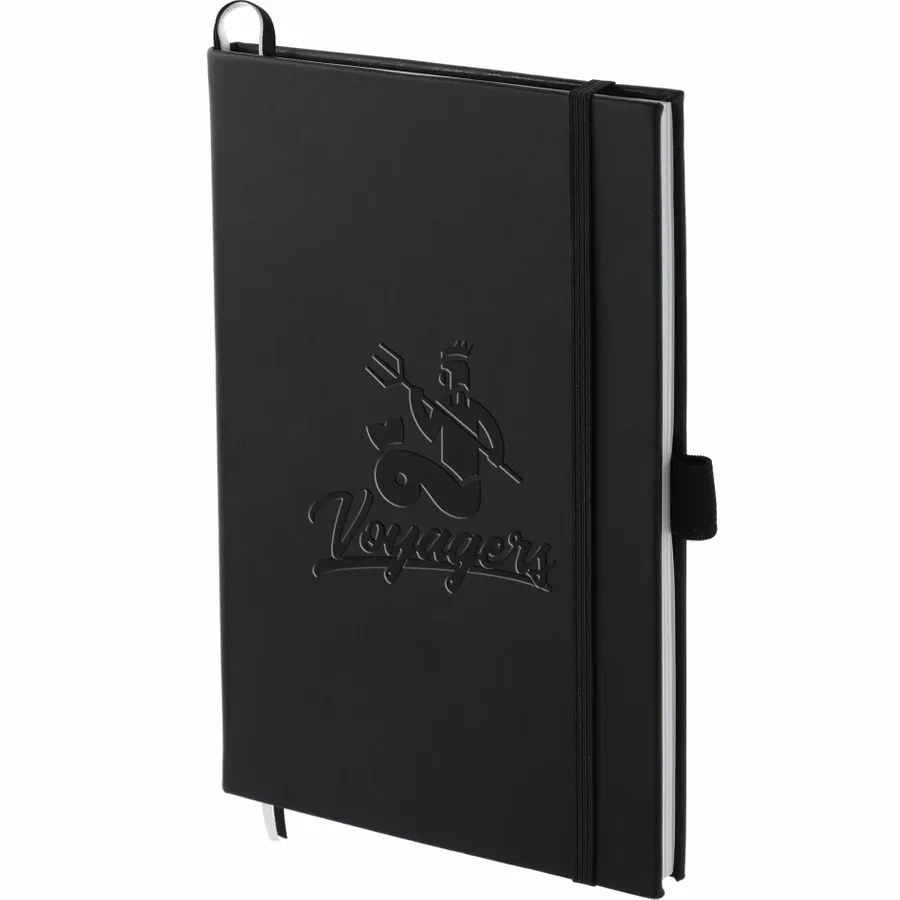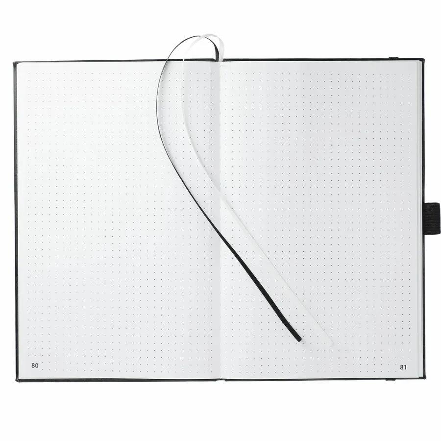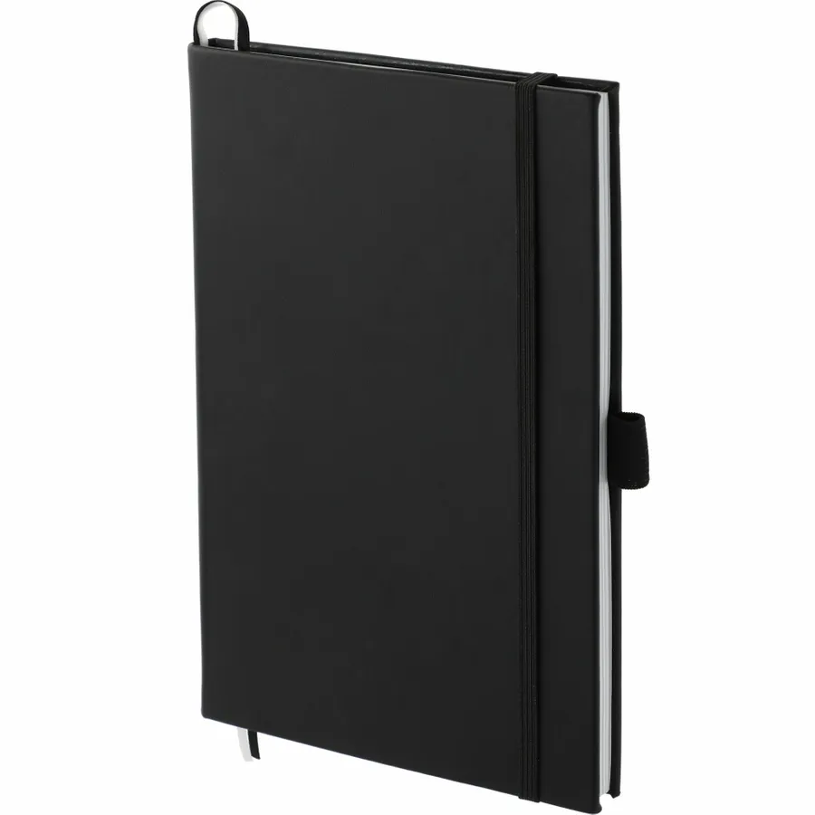 The 5.5 x 8.5 FSC Mix FUNCTION Bulleting Notebook is perfect for organizing your thoughts. Features a square, cornered hardbound cover with color-matching elastic closure and pen loop. Double-ribbon page markers. 80 sheets of FSC Mix white perforated dotted and numbered pages. Pair it with your favorite gel pen.