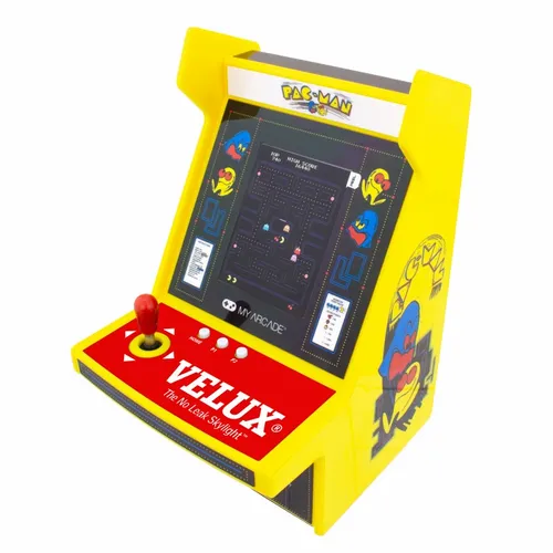 2.75" full-color back-lit display, featuring eye-catching artwork inspired by the nostalgic PAC-MAN arcade cabinet! Play your favorite game on the go and relive those classic arcade moments anytime, anywhere. Whether you power it with 4 AA (not included) batteries for portable fun or connect it with a Type-C cable (not included) cable for stationary play, this device is a must-have for any game room, office, or display case. Bring a touch of retro gaming magic to your space.