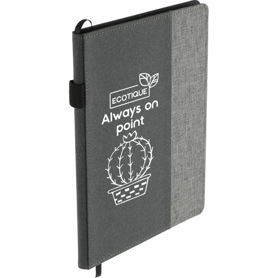 The 7 x 10 FSC Mix Reclaim RPET Refillable Journal is constructed from recycled materials and can be refilled as needed, providing a more sustainable way to record your notes and ideas. It features a ribbon page marker to hold your place and has a convenient elastic pen loop on its spine. This rPET notebook has a recycled leather cover and comes with 80 sheets of FSC Mix lined paper measuring 6 x 9. Plus, a partnership with 1% For The Planet ensures that one percent of your purchase is donated toward supporting nonprofit environmental protection groups.