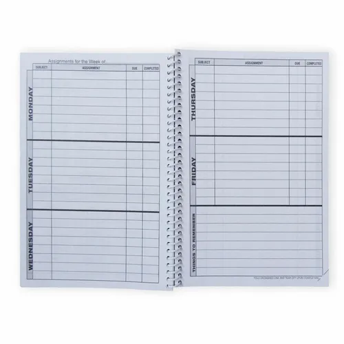 A practical planner designed for students and professionals, featuring a week-to-view layout and flexible spiral-bound cover for easy use.