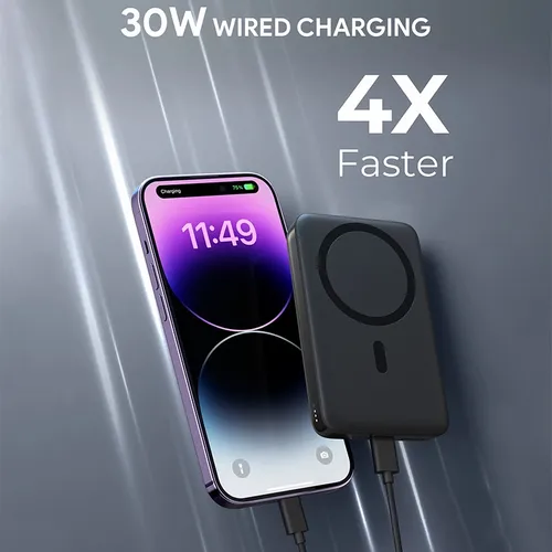 MagSafe Compatibility: Designed specifically for the latest iPhone models, strong built-in magnets allow the power bank to clip on to your MagSafe compatible iPhone, ensuring secure and efficient wireless charging.
