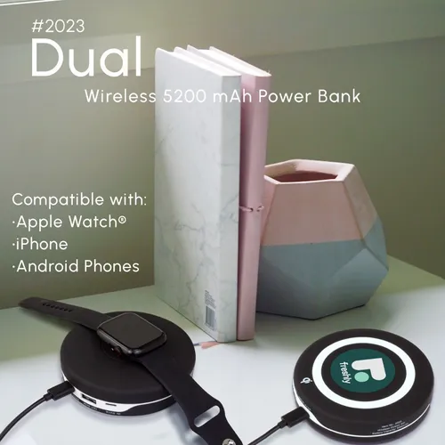 Dual wireless 5200 mAh power bank - compatible with Apple Watch®, iPhone, and Android Phoness