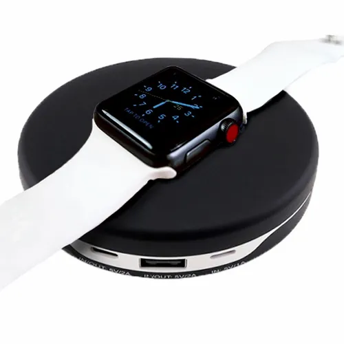 Charges your Apple Watch® or your QI enabled phones at same time with this QI certified Dual Wireless Charging Power Bank. Plug Apple Watch® Charging Cord (Cord Not Included) Into the Internal USB port, follow the inserts to wrap the cord around, place dock in middle and attach cover. This smooth finish power bank charging pad features a 5200mAh Lithium-Ion Grade-A Non-Recycled Battery. Charging is simple, power up the charger and place your QI enabled device or Apple Watch.