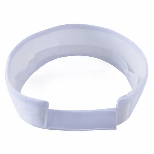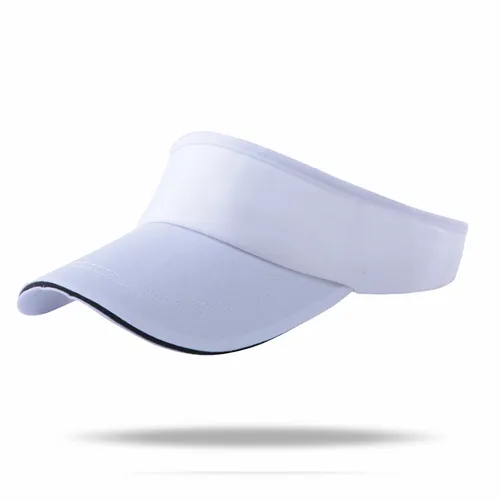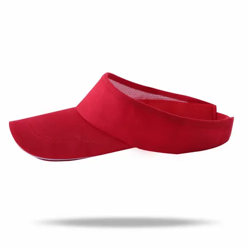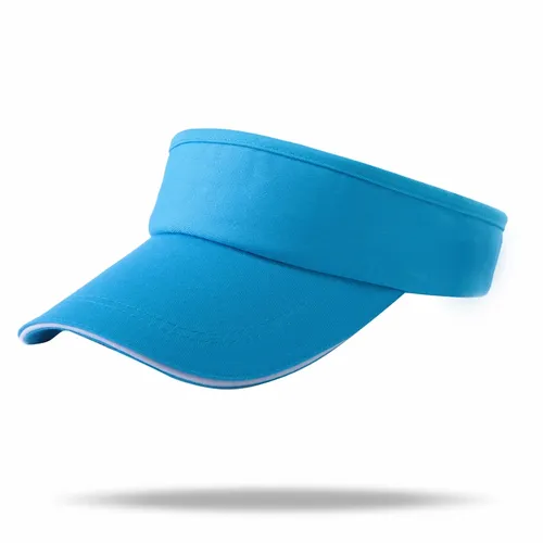 This is a simple visor style that can be worn playing tennis,great for Summertime Outdoor Sports. Adjustable Strap for perfect fit. Plain Solid colors to design team logos. Light weight and comfortable for sun and summer and Bill is stiff and pre curved, Sandwich bill.