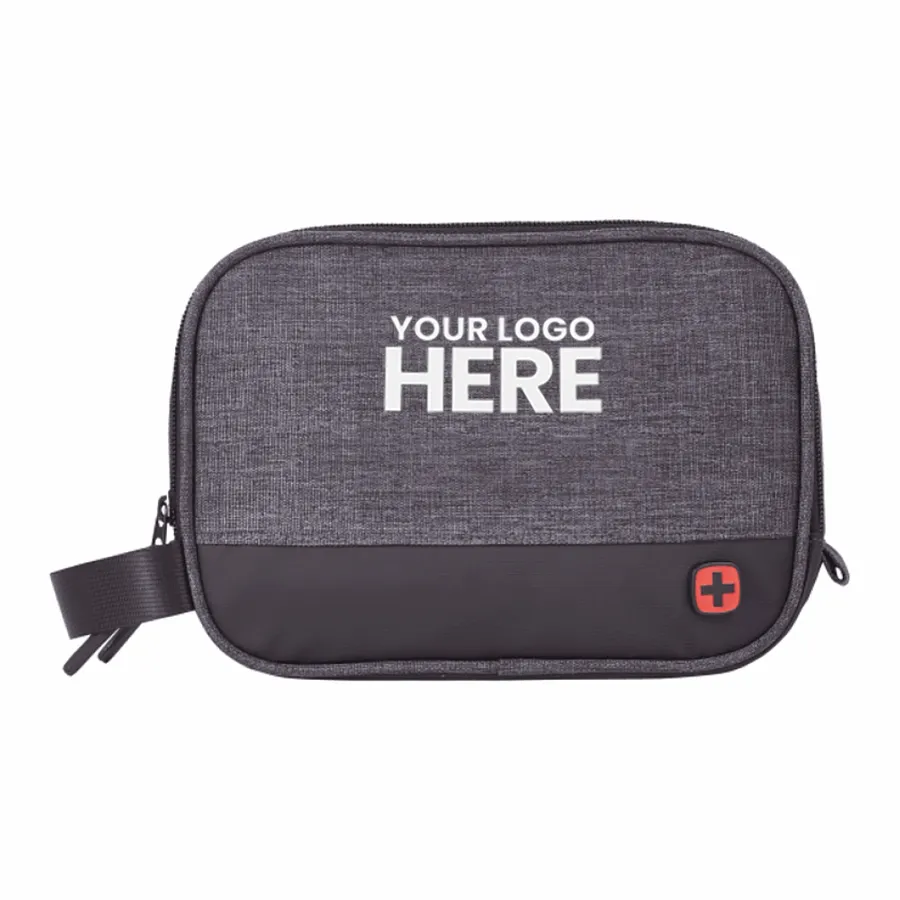 The Wenger RPET Dual Compartment Dopp Kit features two water-resistant compartments with organizational pockets to store toiletries, plus a webbed loop handle for grab-and-go convenience.