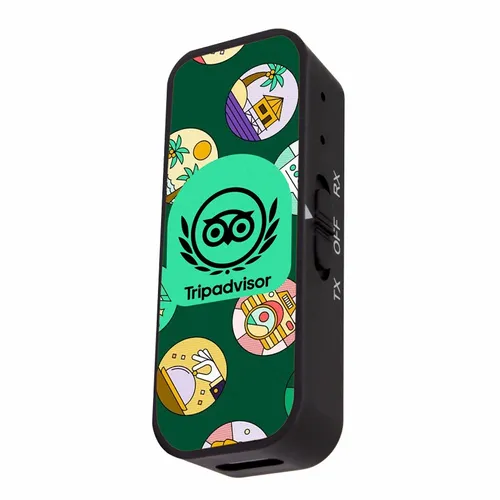 A transmitter that will connect your wireless headphones or earbuds to any audio jack. Use it on the plane, boat, or in the gym, anywhere there is an audio jack. Easily switch between transmit (TX) and receive (RX) modes. It has a 3.5mm audio aux port and Type-C charging port.