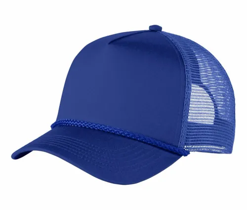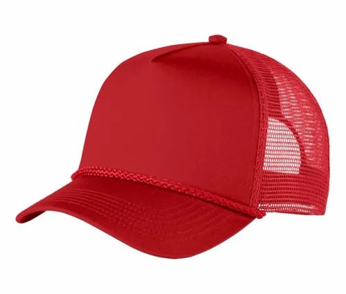 This 5-panel cap features a dyed-to-match braid above the bill for a classic look. Fabric: 100% cotton front panels, 100% polyester woven mesh mid and back panels Structure: Structured Profile: Mid Closure: 7-position adjustable snap