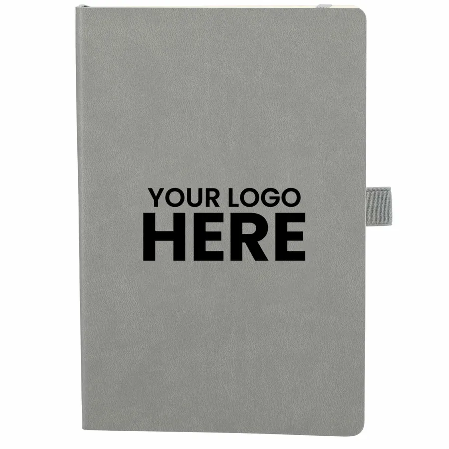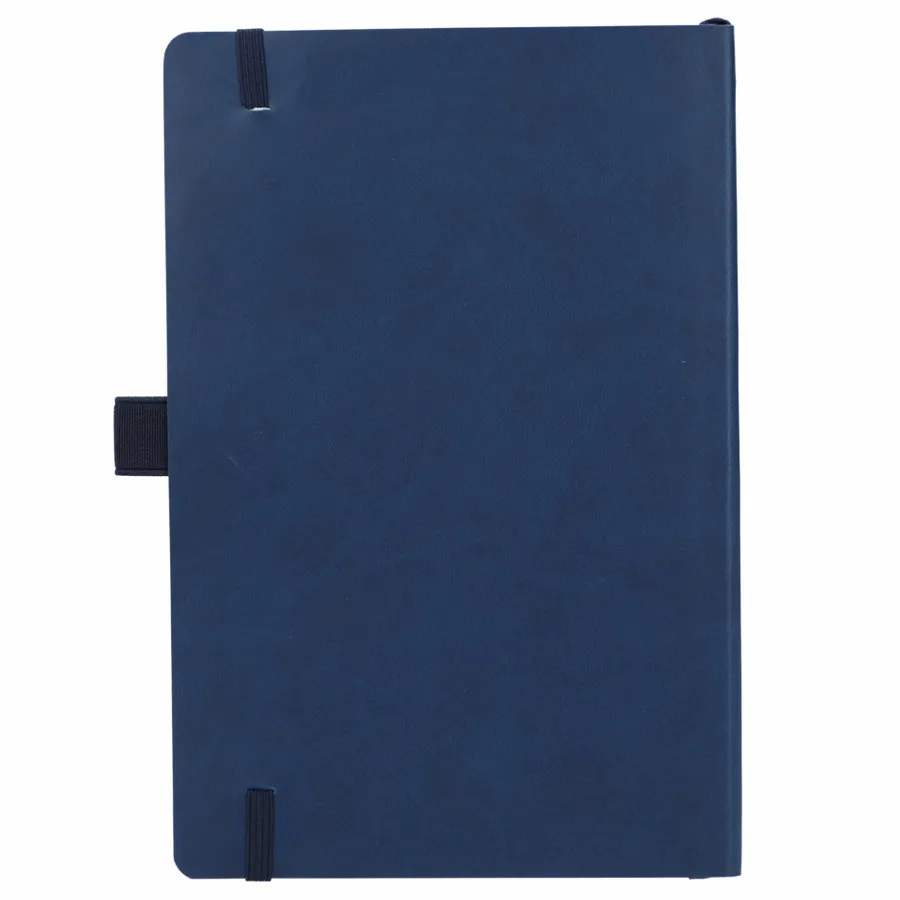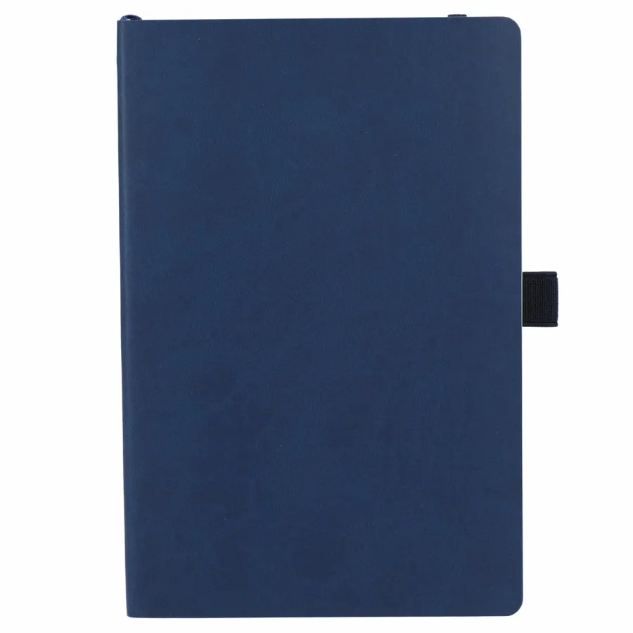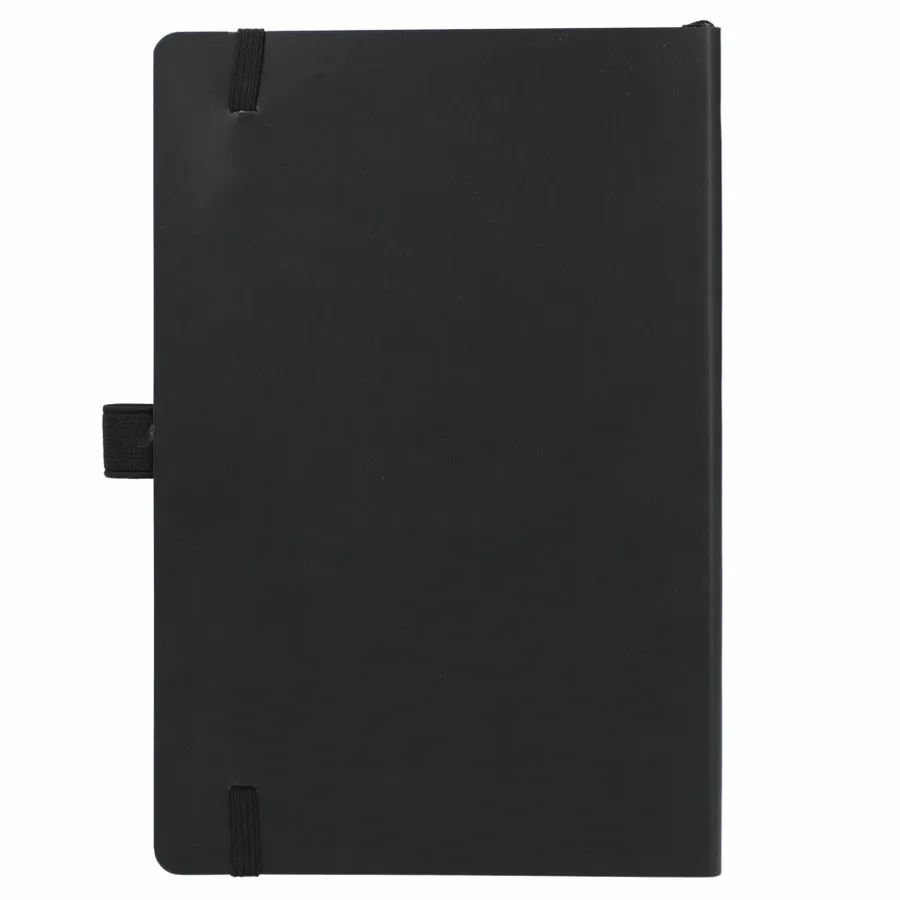 The 5.5 x 8.5” Skiva Recycled Soft Bound Journal features a recycled polyurethane cover and 80 pages of recycled cream lined paper. Includes document pocket, color matching elastic band, pen loop and ribbon page marker.