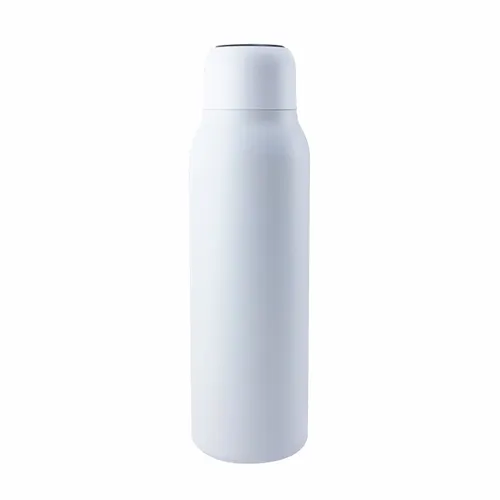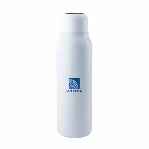 An insulated bottle that purifies your drink and interior surface with just a touch of a button. Using UV-C LED light disinfection technology eliminates 99.99% of harmful bacteria and odors. Made with food-grade 304-stainless steel, and double-wall insulation construction keeps your beverages cold for 24 hours or hot for 12 hours. Its convenient "self-cleaning mode" automatically operates every 6 hours when active and helps keep the bottle germ and odor-free. Large 20 oz. capacity.
