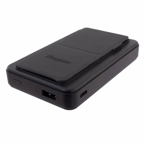A great looking Energizer power bank with 10,000 mAh battery capacity. Magnetically holds to newer compatible phones. It also has a convenient foldout stand to prop up on a desktop surface to keep your hands free. It's a great device for daily use for any busy professional. Specifications: Model Name: QM10004PQ Cell Type: Lithium Polymer Battery Capacity: 10000mAh/38.5Wh(Max.) Rated Input: USB-C PD 5V/3A, 9V/2A Rated Output 1: USB-A 4.5V/5A, 5V/4.5A, 5V/3A, 9Vl2A, 12V/1.5A